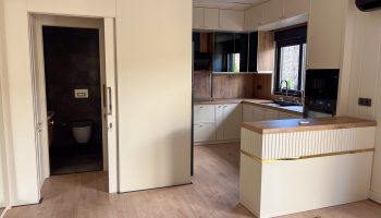 Интерьер дуплекса выполнен в светлых пастельных тонах, что визуально расширяет пространство и создаёт уютную атмосферу. Использование современных материалов и продуманное освещение подчёркивают стильность и функциональность объекта.