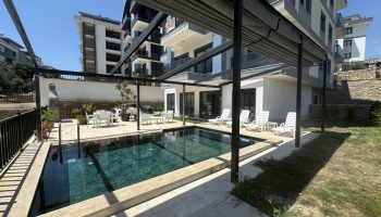 Современный дуплекс с дизайнерской отделкой и светлым интерьером в районе Оба, Аланья. Дуплекс подойдет для тех, кто ищет комфортное жильё рядом с природой и развитой городской инфраструктурой.