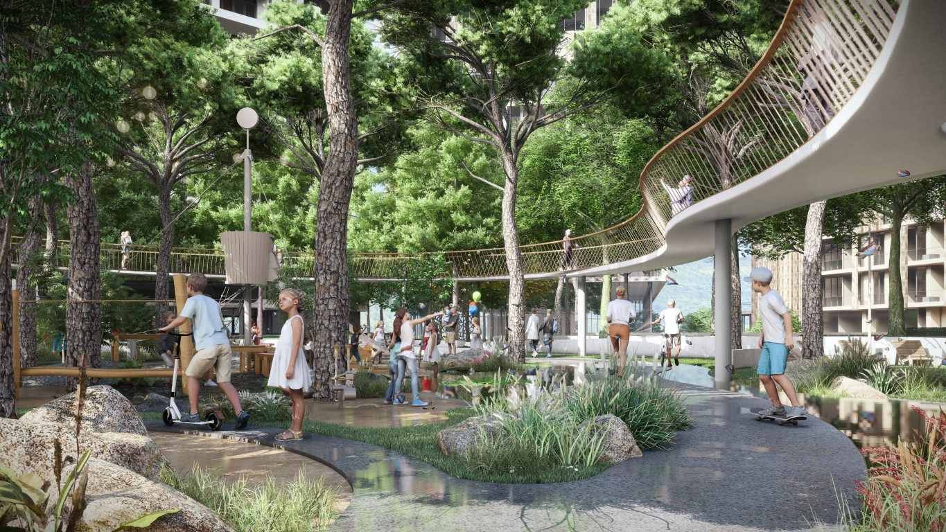 Особое внимание уделено природной зоне, занимающей 15 000 м², где растут 200 итальянских деревьев. Также здесь находятся детские площадки из натурального дерева и 30 зон для активного отдыха.