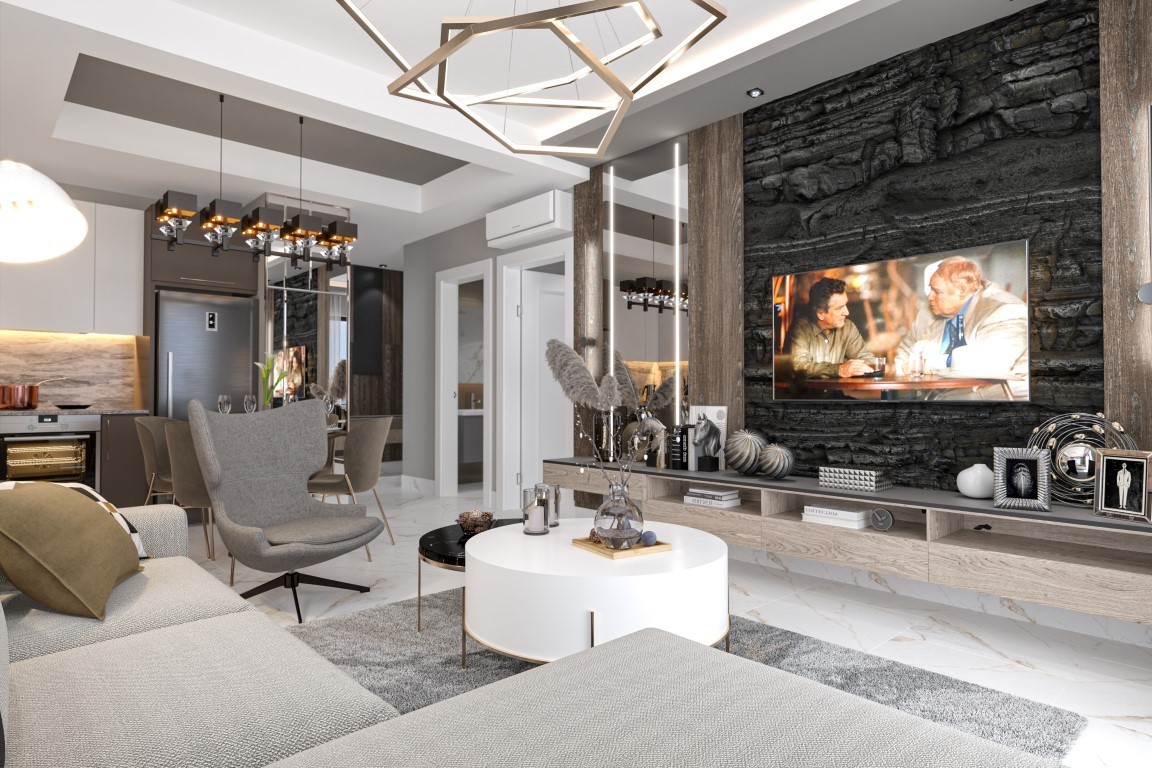 Откройте для себя жизнь в одном из самых живописных районов Аланьи — Авсалларе, расположенном всего в 600 метрах от городского центра и в 800 метрах от живописного пляжа. Этот район сочетает в себе удобства городской жизни и красоту природы. Авсаллар известен своими зелёными зонами, спокойной атмосферой и чистыми пляжами, что делает его идеальным местом для тех, кто ищет гармонию между уединением и доступностью всех необходимых удобств.