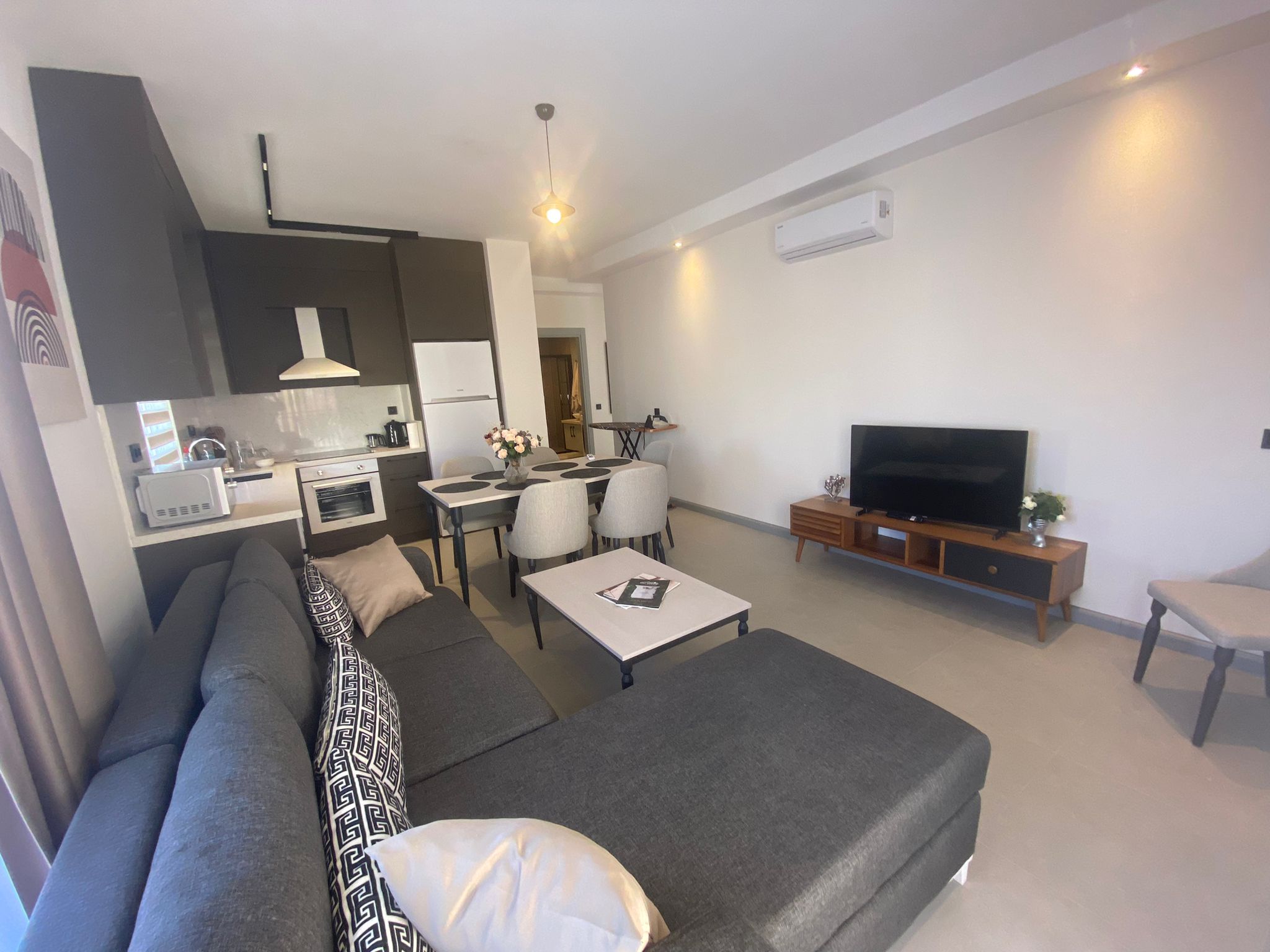 Отличное предложение в самом центре города! Квартира расположена в новом доме с качественной постройкой на тихой улице, всего в 250 метрах от пляжа. Это идеальное место для тех, кто ценит близость к морю и удобство проживания в центре города. Район отличается хорошей инфраструктурой и спокойной атмосферой, а все необходимые магазины и рестораны находятся в шаговой доступности.