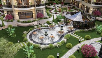 Комплекс также оснащен современными удобствами, такими как крытая и открытая парковка, зоны отдыха с шезлонгами, зоны для барбекю, прогулочные дорожки и соляная комната. Для удобства жителей предусмотрены беспроводной интернет и видеонаблюдение 24/7, а также шаттл до пляжа.