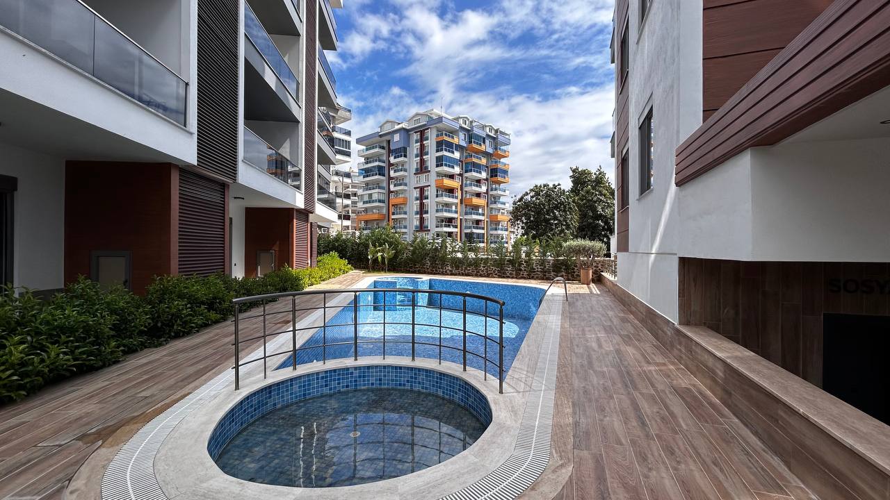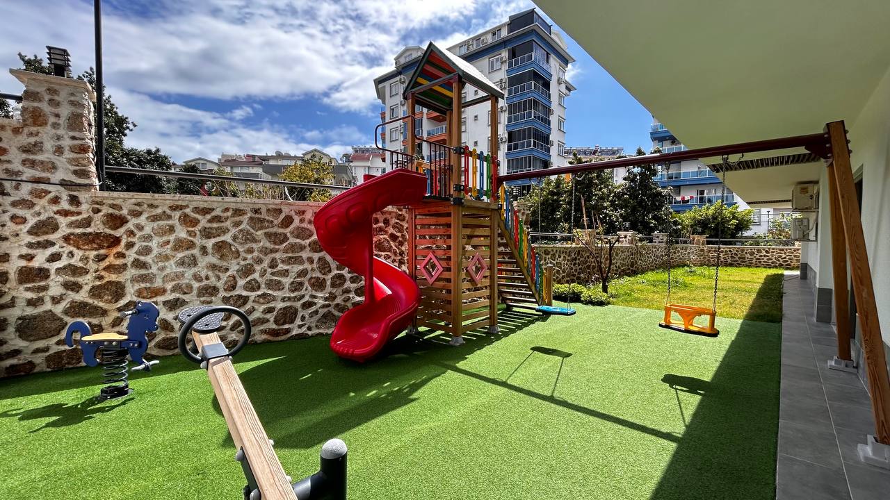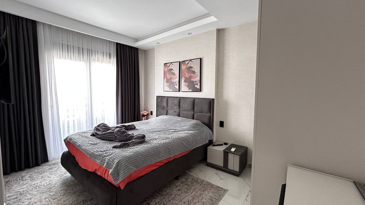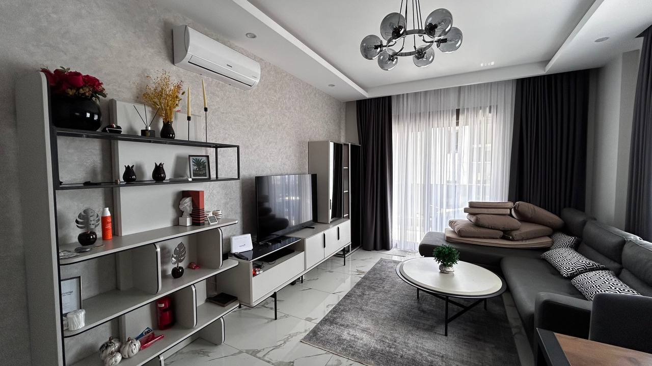 Квартира с планировкой 2+1 и площадью 120 м² находится на 3 этаже. Просторная гостиная объединена с кухней, создавая открытое пространство, которое делает квартиру еще более светлой и уютной. В квартире две комнаты, которые могут быть использованы как спальни или кабинеты, а также две современные ванные комнаты. Особенностью квартиры являются панорамные окна, которые пропускают много естественного света и открывают виды на горы, город и природу. Два балкона добавляют дополнительное пространство для отдыха на свежем воздухе. Квартира меблирована.