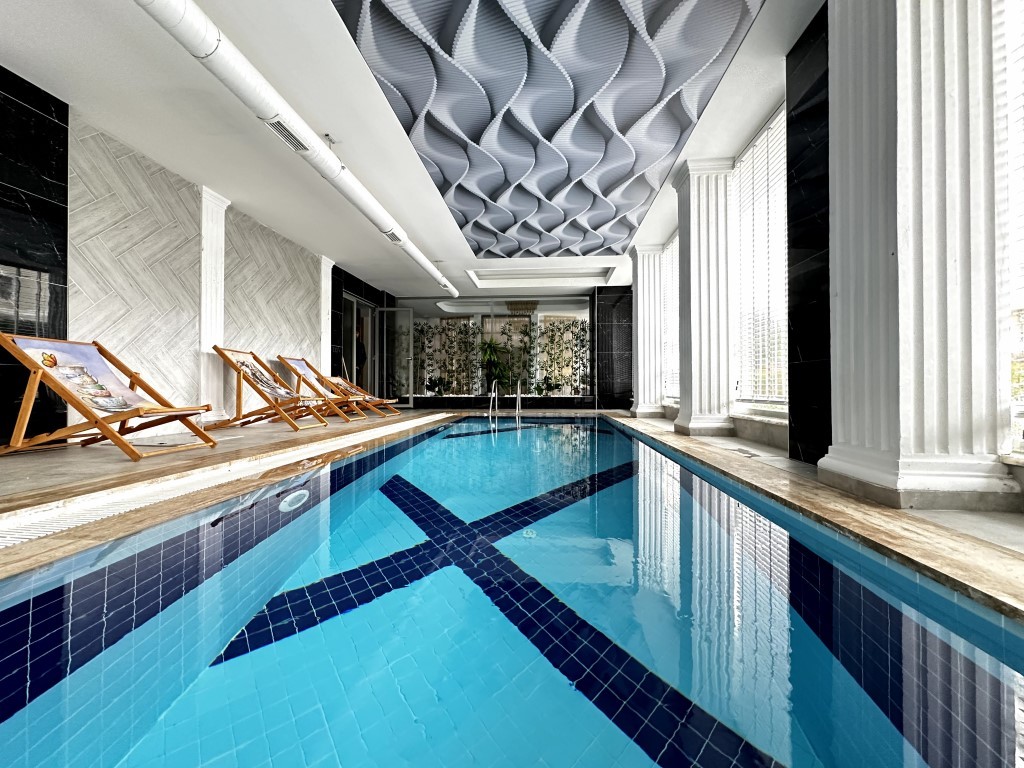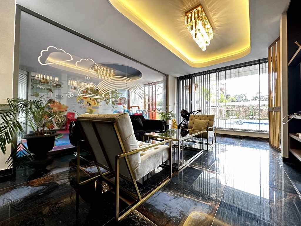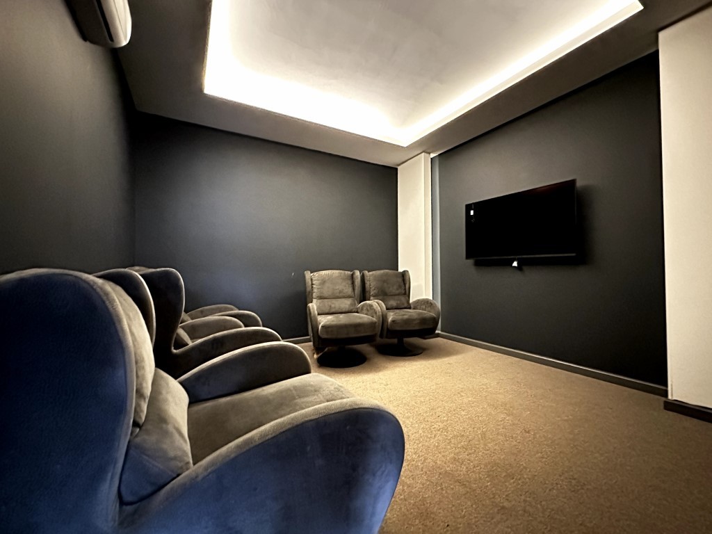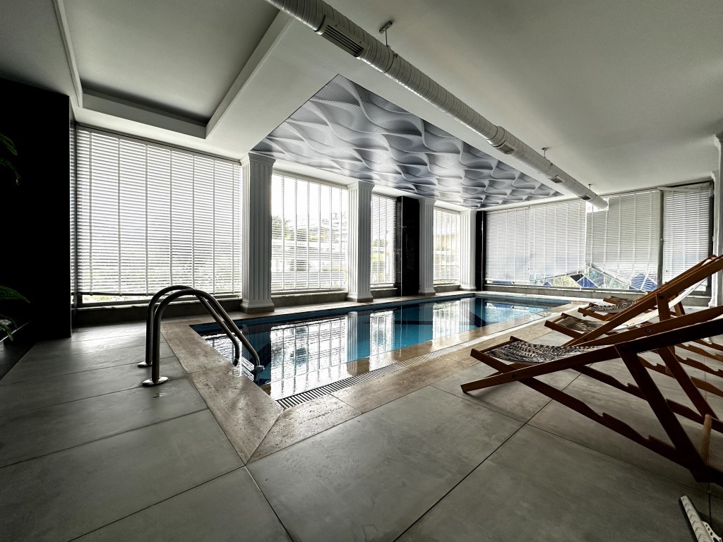 Комплекс, в котором расположена квартира, предлагает богатую инфраструктуру для досуга и отдыха: аквапарк, закрытый и открытый бассейны, детский бассейн, фитнес-центр и сауна (финская и римская парная). Для развлечений есть кинотеатр, настольный теннис и зоны для барбекю. Также на территории комплекса имеются зеленый сад, детская площадка и парковка. Для вашего удобства установлены видеонаблюдение 24/7 и лифт.