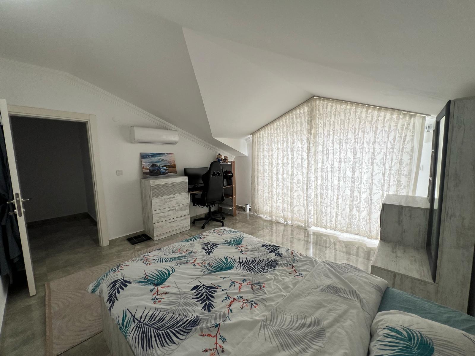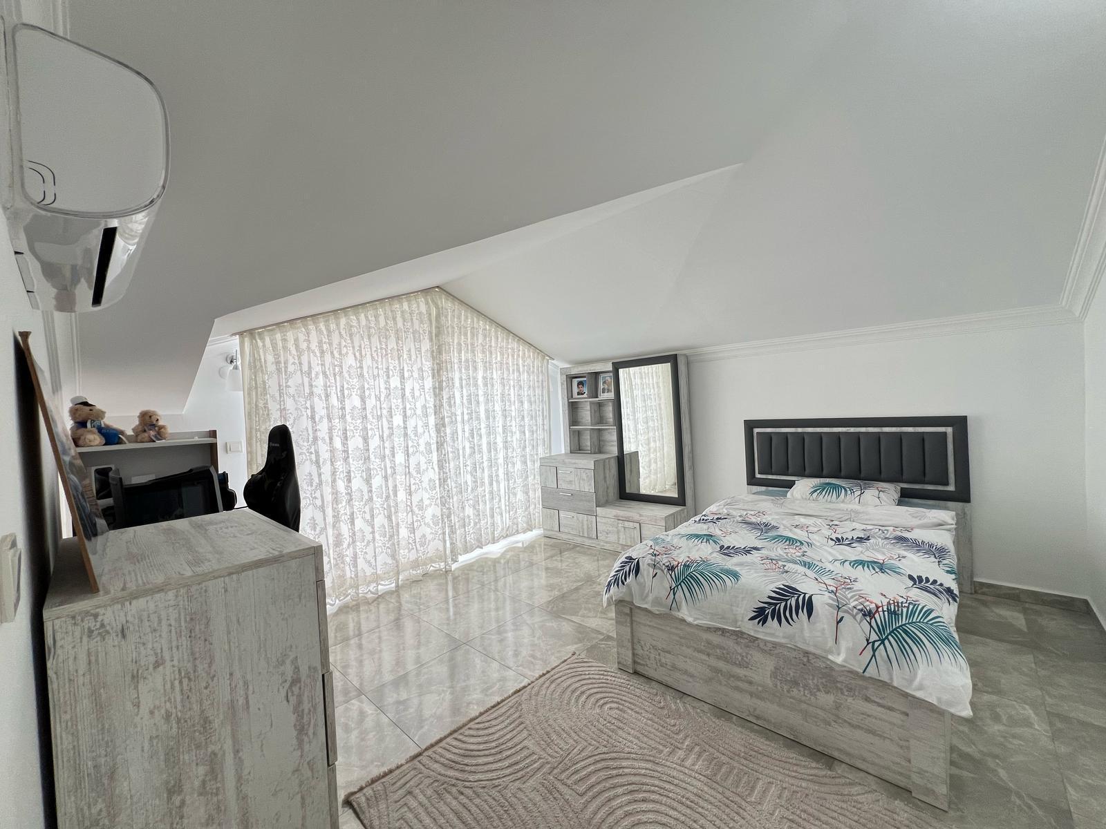 Продаётся пентхаус с планировкой 4+1 в престижном районе Оба, всего в 200 метрах от моря. Квартира просторная, общей площадью 200 м², полностью меблирована и оснащена всей необходимой бытовой техникой. Внутри – три спальни, светлая гостиная с кухней открытого типа, три ванные комнаты и три балкона. Из окон и балконов открывается живописный вид на горы, создающий атмосферу уюта и уединения.