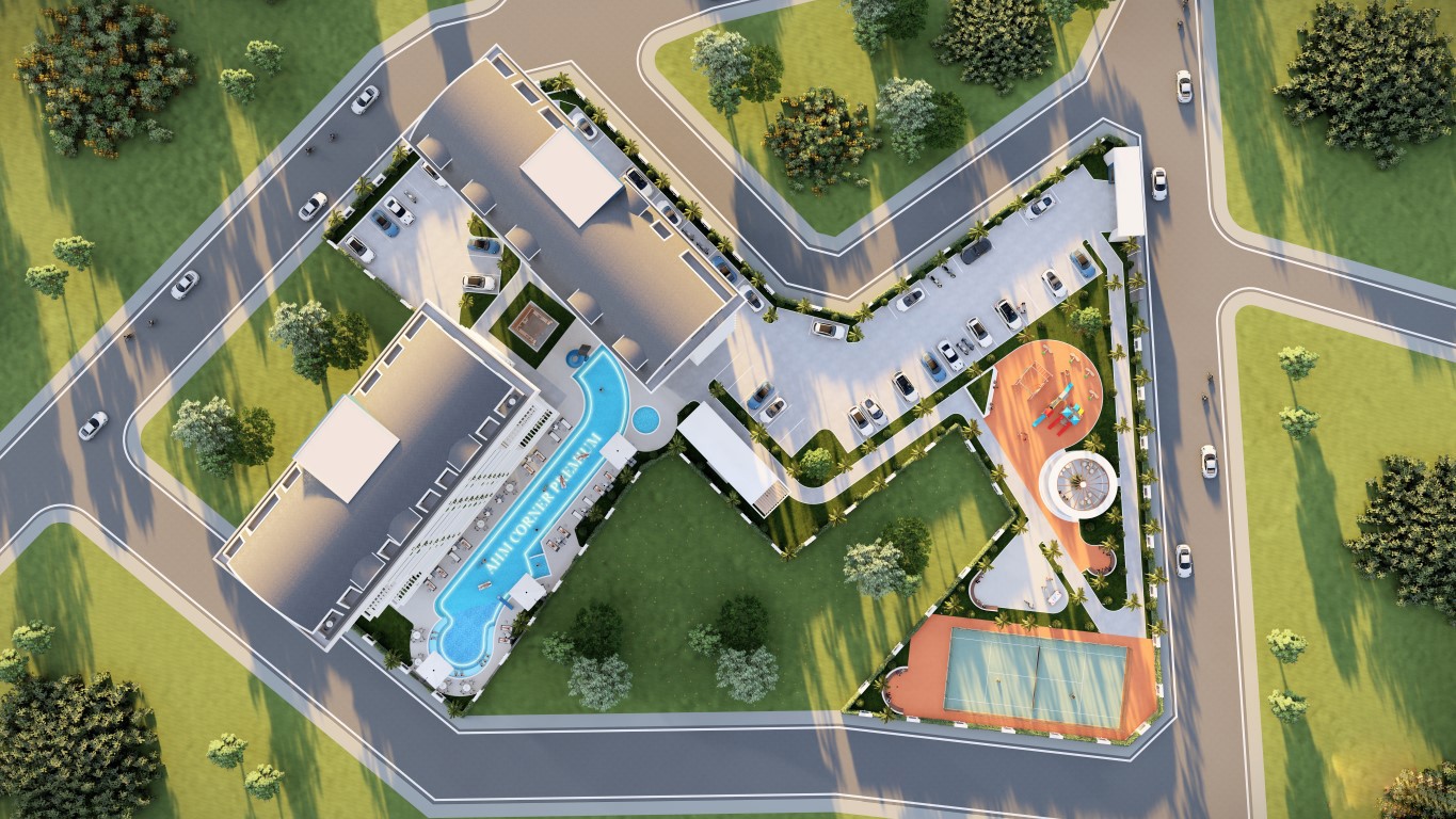 Комплекс будет расположен на участке площадью 6.067 м² и будет состоять из двух жилых блоков. В общей сложности предусмотрено 137 квартир различной планировки: однокомнатные, двухкомнатные, а также двухуровневые апартаменты с тремя и четырьмя спальнями. Такое разнообразие позволяет подобрать жильё, соответствующее самым разным потребностям — от уютных квартир для пары до просторных дуплексов для семей.