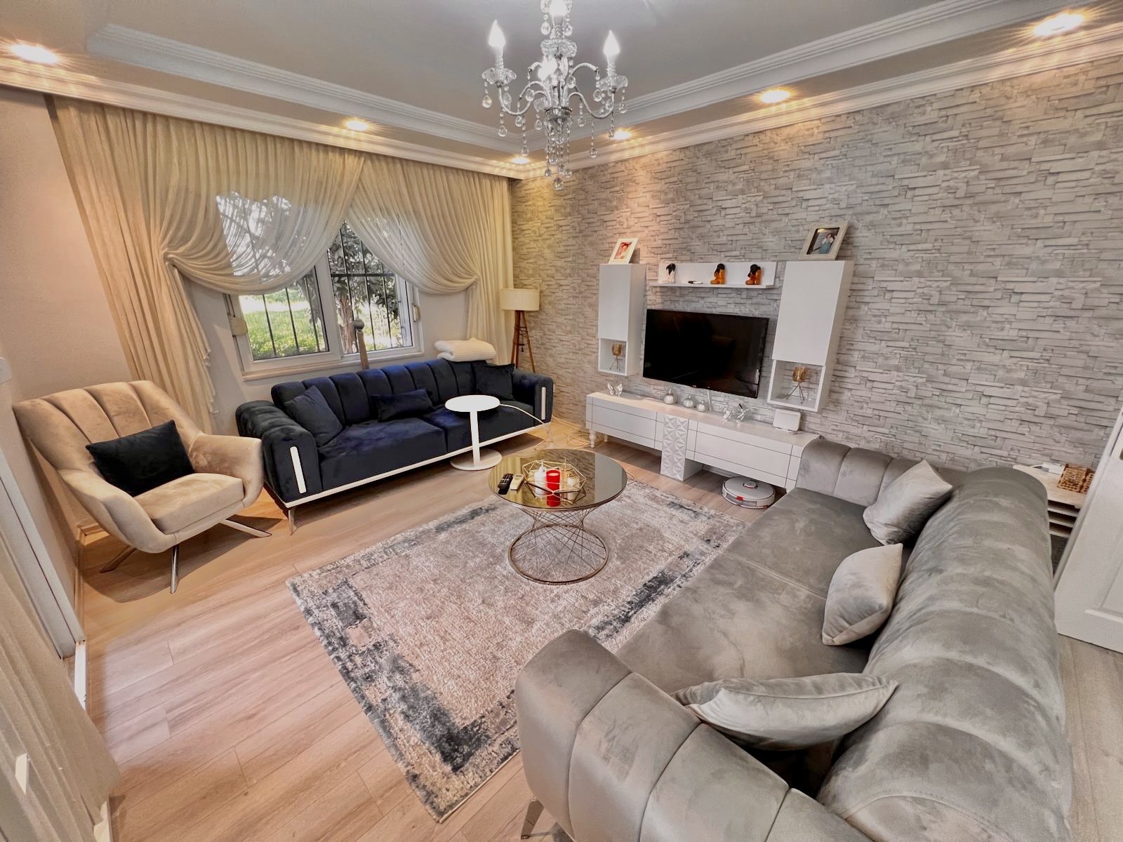 Расположение квартиры очень удобное — всего в 750 метрах от моря, что позволит наслаждаться пляжным отдыхом и морским воздухом в любое время. Центр города предлагает развитую инфраструктуру: магазины, кафе, рынки, школы и транспортные связи, что делает этот вариант особенно привлекательным для постоянного проживания.
