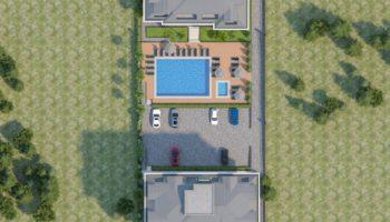 Проект представляет собой два 7-ми этажных здания с отгороженной территорией. В инфраструктуру комплекса входит бассейн с детской секцией, беседки для отдыха, сад, детская площадка, фитнес-центр, сауна и хамам.