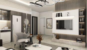 2+1: гостиная, совмещенная с кухней, 2 спальни,2 санузла, 2 балкона