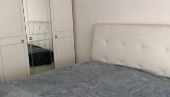 Квартира площадью 60 м² расположена на первом жилом (втором фактическом) этаже. Планировка 1+1 включает светлую гостиную, совмещённую с кухней, отдельную спальню, ванную комнату и просторный балкон с прозрачным ограждением, где обустроена обеденная зона. В квартире выполнена качественная чистовая отделка: на полу лежит кафель, потолки оформлены гипсокартонными элементами с декоративной подсветкой, стены выдержаны в спокойных, пастельных тонах. Кухня оборудована стильным угловым гарнитуром со встроенной техникой и вместительными шкафчиками. В гостиной установлен большой мягкий диван и телевизор. Спальня укомплектована двуспальной кроватью и зеркальным шкафом. В ванной комнате — душевая кабина, современная сантехника и вся необходимая мебель.