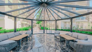 Каждая квартира будет оборудована полным комплектом бытовой техники, кондиционерами во всех комнатах, а также подогревом пола в ванных комнатах — всё это уже включено в стоимость.