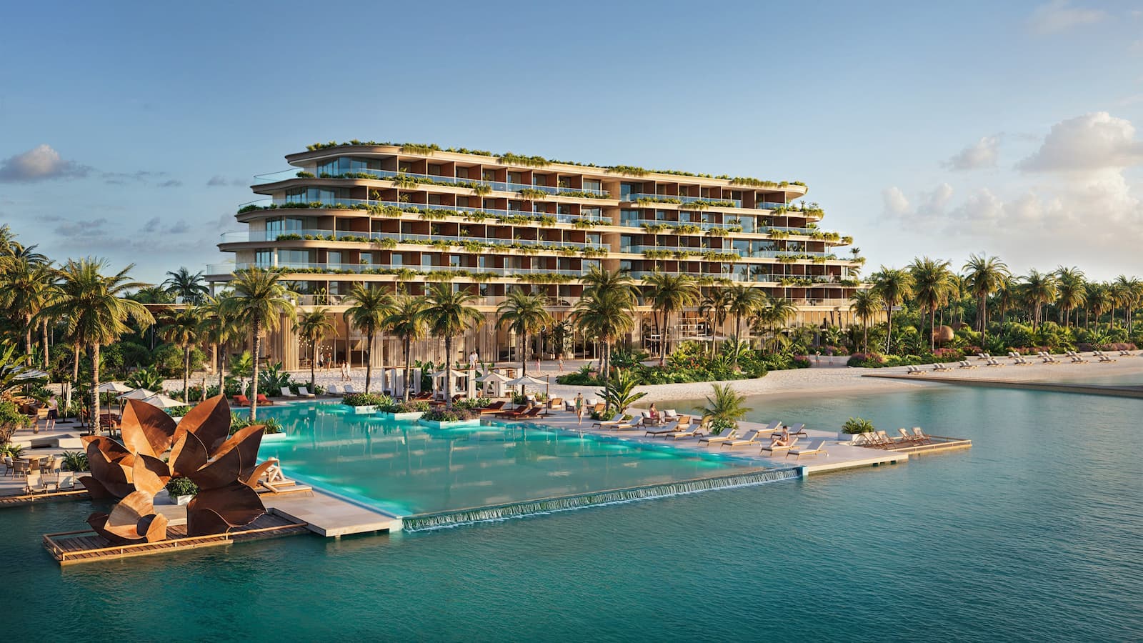 Курорт предлагает полноценную инфраструктуру: собственный пляж, бассейны с панорамными видами, SPA-зону на воде, рестораны, включая уникальный плавучий формат, зоны отдыха, коворкинг и кинотеатр под открытым небом. Дополнительным преимуществом является расположение рядом с серф-спотами мирового уровня, что увеличивает туристический поток и повышает загрузку комплекса.