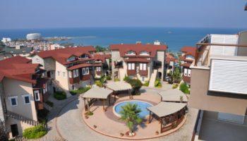 Комплекс 4х этажных зданий на территории с инфраструктурой отеля 5 *. С высоты 4го этажа открывается прекрасный вид на море, горы, бассейн и инфраструктуру города.
