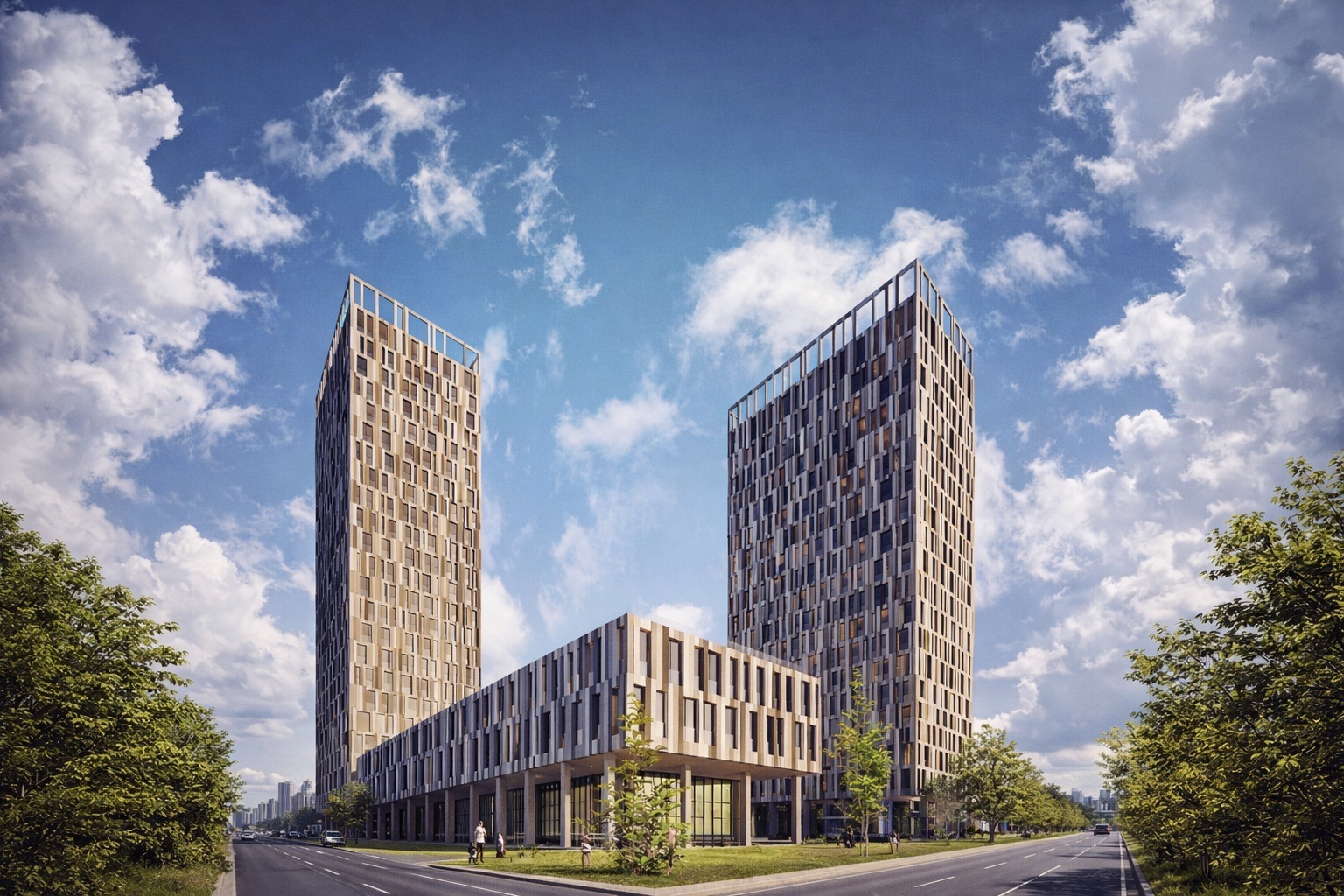 Проект выполнен в современном формате, объединяющем жилые апартаменты, офисные помещения и коммерческие пространства. Такое решение делает комплекс универсальным — он подходит как для проживания, так и для использования в инвестиционных целях.