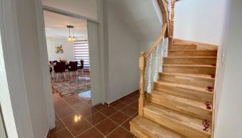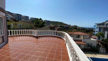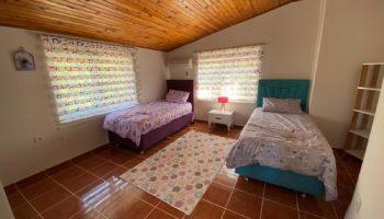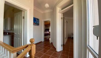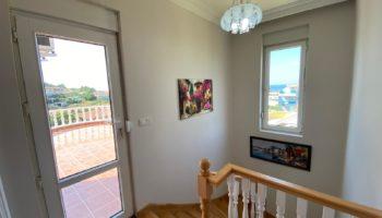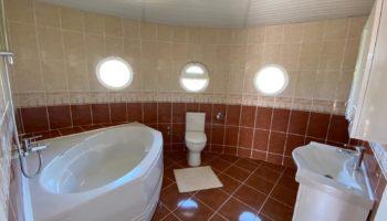 Двухэтажный дом с тремя спальнями, отдельной кухней, гостиной, прихожей и двумя просторными террасами. В одном из санузлов установлена ванна. На одной террасе есть мангал-камин.