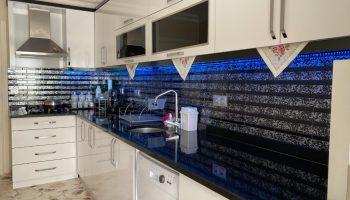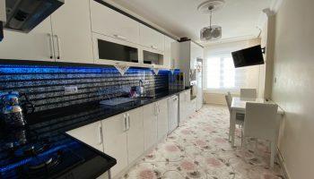 В квартире выполнена качественная отделка, помещения оформлены в пастельных тонах. На кухне имеется современный гарнитур с подсветкой рабочей зоны, большое пространство для хранения, есть место для столовой. В гостиной на полу лежит кафель, потолок красиво оформлен гипсокартоном, два больших окна делают комнату светлой и еще более просторной. Ванные комнаты полностью укомплектованы сантехникой и мебелью: в одной стоит ванна, в другой – душевая кабинка во всю стену.
