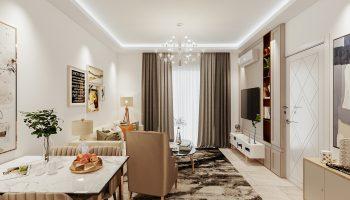 В стоимость квартир входит качественная чистовая отделка: гранитные полы и столешницы, гипсокартонные потолки с подсветкой, кухонная встроенная мебель и полностью оформленные ванные комнаты.