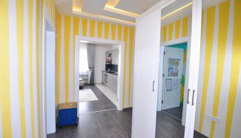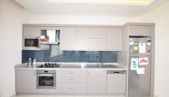 Планировка 2+1 общей площадью 100 м².Кухня объединена с гостиной зоной. 2 спальных, 2 ванных, 1 балкон.